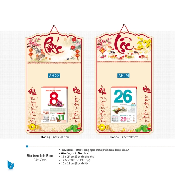 Gắn được các loại Bloc lịch :