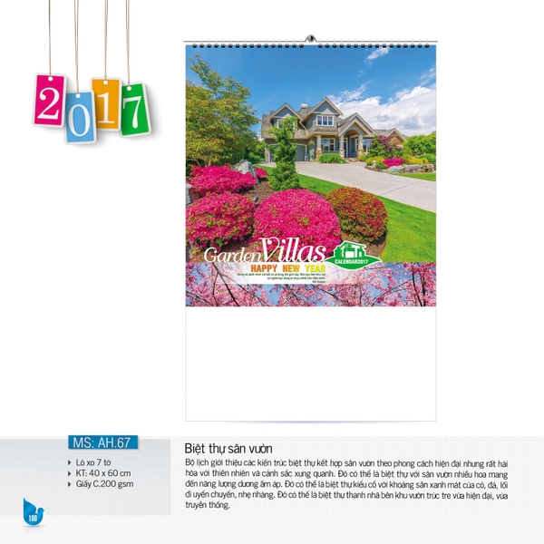 - Loại lịch : lò xo 7 tờ