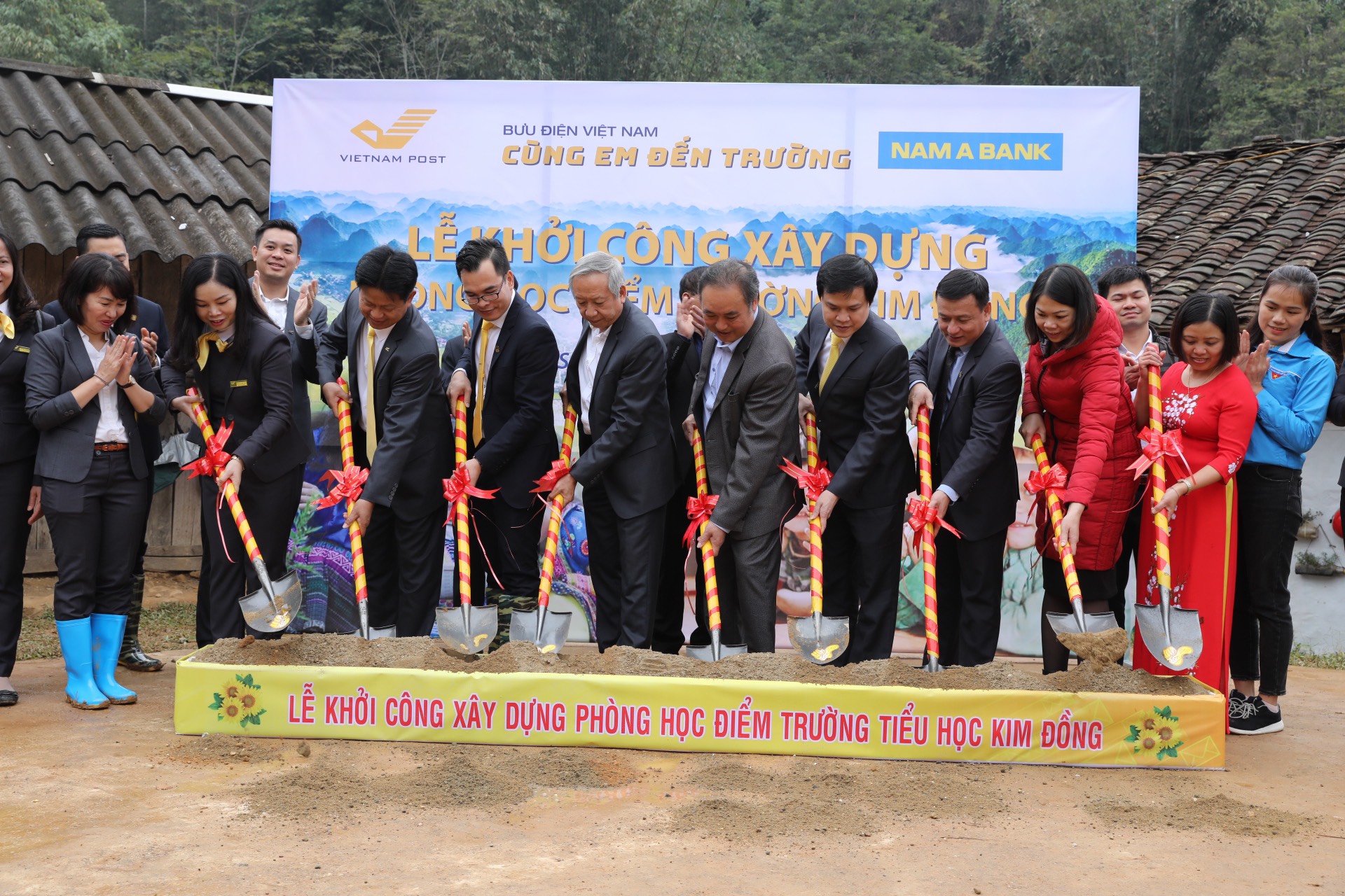 Lãnh đạo Vietnam Post, Nam A Bank cùng các đại biểu khởi công xây dựng điểm trường Kim Đồng