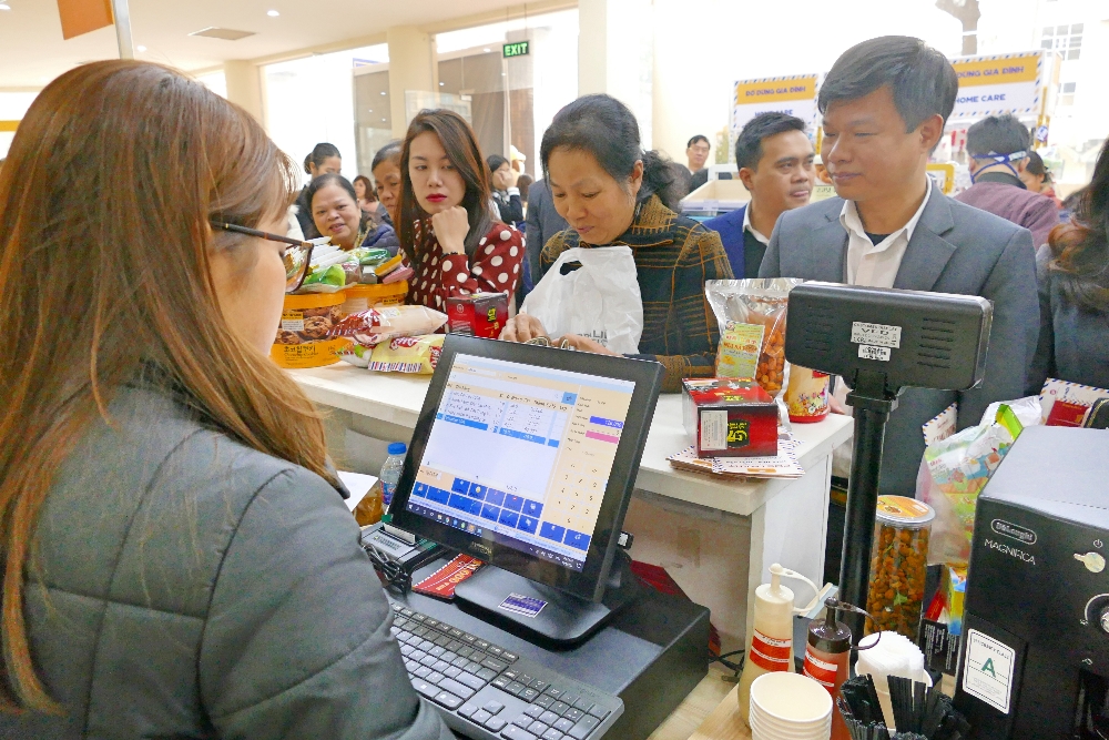 Ảnh: Khách hàng mua sắm sản phẩm tại cửa hàng tiện lợi Postmart
