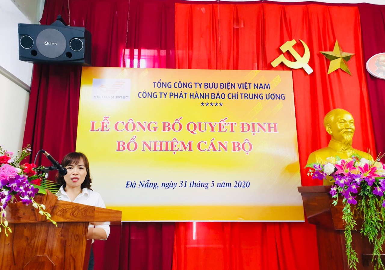 Ngày 31/5, tại trụ sở Trung tâm kinh doanh 3 số 377 Nguyễn Văn Linh, quận Thanh Khê, TP Đà Nẵng, Công ty Phát hành báo chí Trung Ương đã tổ chức Lễ công bố Quyết định bổ nhiệm cán bộ. Ông Bùi Văn Hoàng - Bí thư Đảng bộ, Giám đốc công ty đã trao Quyết định bổ nhiệm bà Võ Thị Kiều Anh giữ chức vụ Giám đốc Trung tâm Kinh doanh 3 – Công ty Phát hành báo chí Trung Ương.