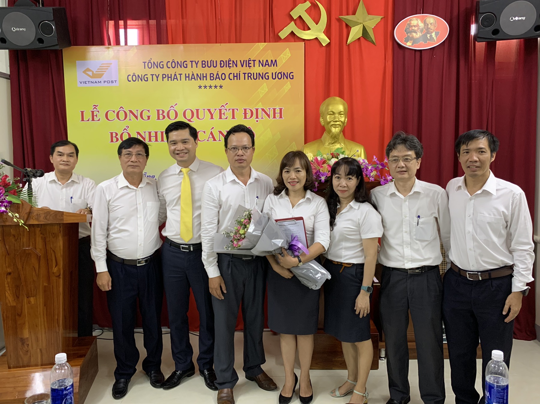 Ban lãnh đạo công ty tặng hoa và chúc mừng đồng chí Võ Thị Kiều Anh giữ chức vụ Giám đốc Trung tâm Kinh doanh 3