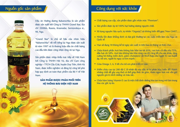 - Dầu rất trong, trộn salad, chiên rán không bị mùi ngấy của dầu mỡ như các loại dầu khác. - Dầu Ăn Hướng Dương tốt cho sức khỏe vì được chiết xuất 100% từ những hạt hướng dương thơm ngon được tuyển chọn kỹ lưỡng từ vùng nguyên liệu sạch của Nga. Với điểm cháy cao 246 độ C, dầu Hướng Dương là loại dầu giúp thức ăn giòn, thơm ngon mà vẫn giữ nguyên giá trị dinh dưỡng.