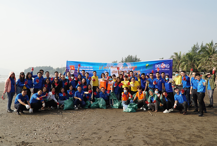 Đoàn thanh niên các đơn vị ra quân làm sạch biển, chống rác thải nhựa tại Quận Đồ Sơn, Hải Phòng