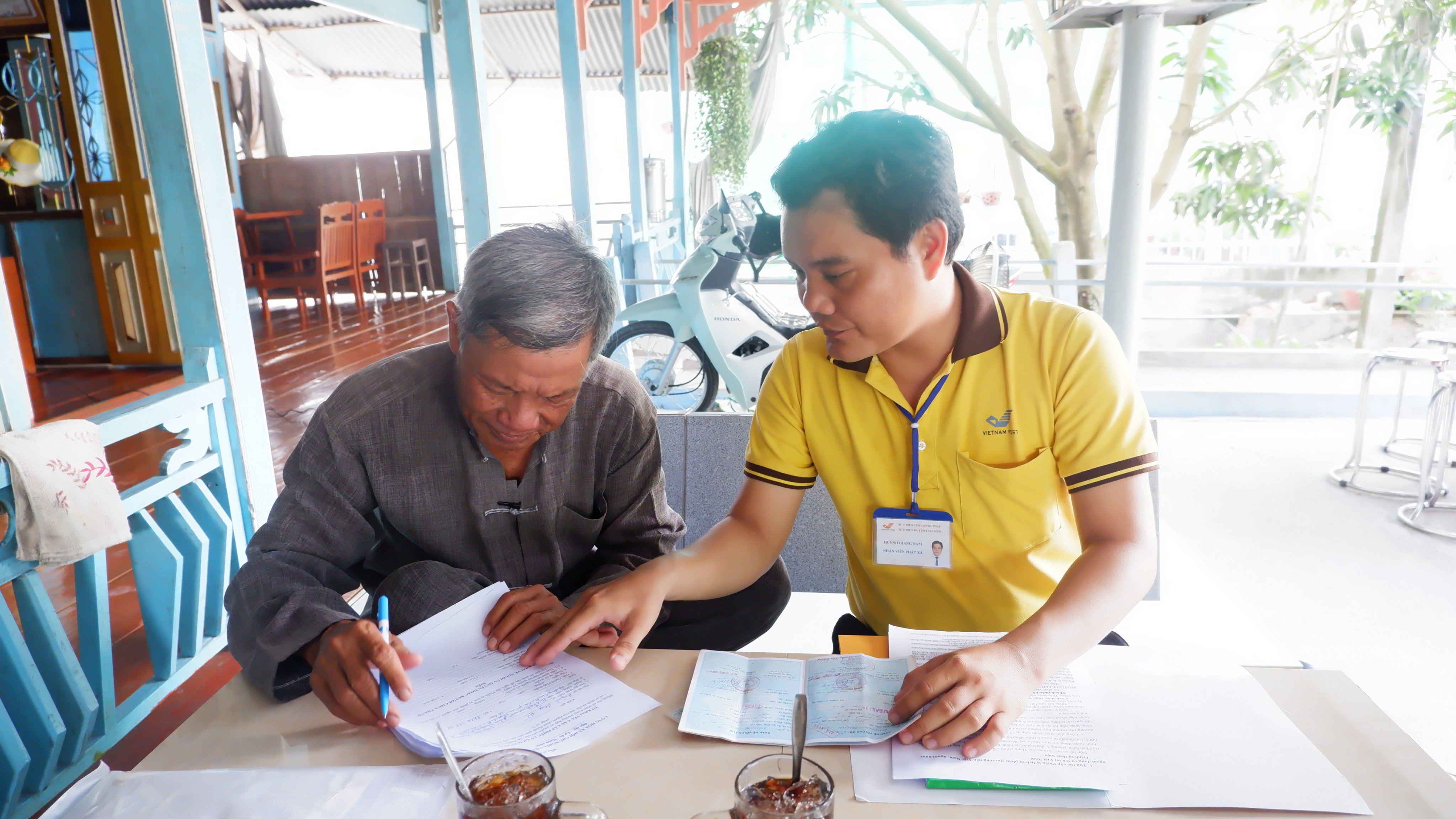 Nhân viên Bưu điện huyện Tam Nông, Đồng Tháp thực hiện tiếp nhận hồ sơ giải quyết thủ tục hành chính tại nhà