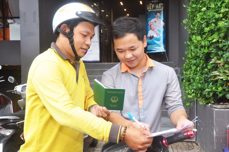 Nhân viên phát kết quả giải quyết thủ tục hành chính tại địa chỉ người dân yêu cầu