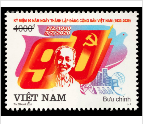 Năm 2020, nhân kỷ niệm 90 năm thành lập Đảng Cộng sản Việt Nam, là dịp để nhân dân Việt Nam nhìn lại những thành tựu vĩ đại, truyền thống quý báu, những bài học kinh nghiệm của Đảng trong công cuộc xây dựng và bảo vệ Tổ quốc 90 năm qua, nhất là hơn 30 năm lãnh đạo sự nghiệp đổi mới đất nước. Để góp phần tuyên truyền chủ trương, đường lối của Đảng, Bộ Thông tin và Truyền thông phát hành bộ tem “Kỷ niệm 90 năm thành lập Đảng Cộng sản Việt Nam (3/2/1930-3/2/2020)” gồm 01 mẫu tem, có giá mặt 4000đ.