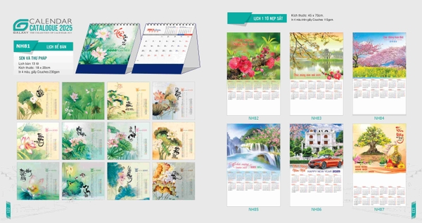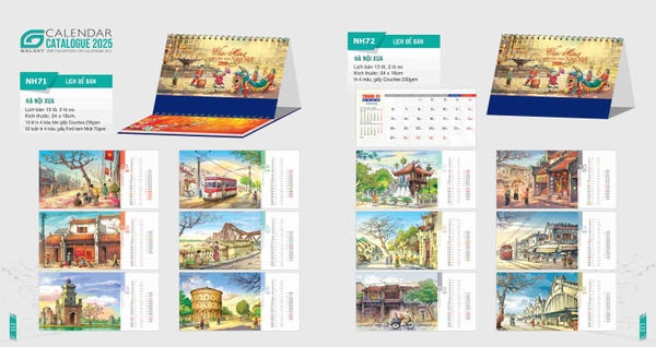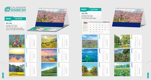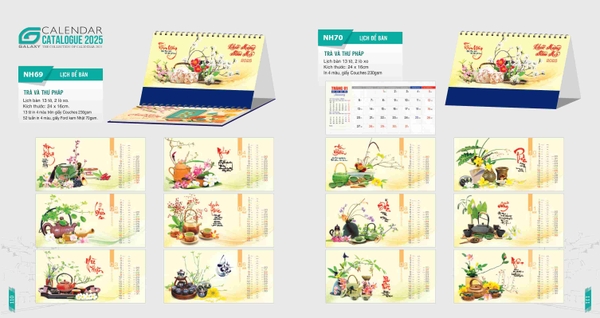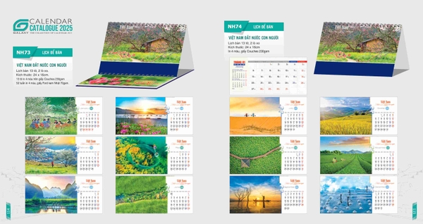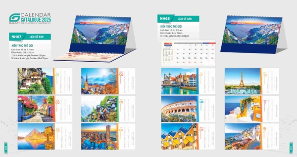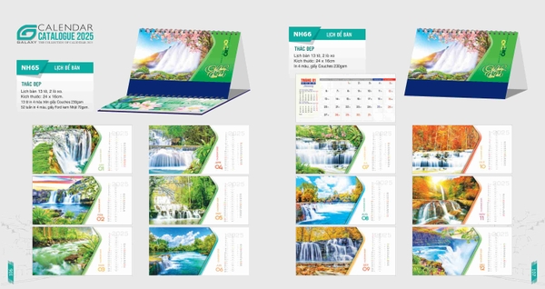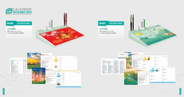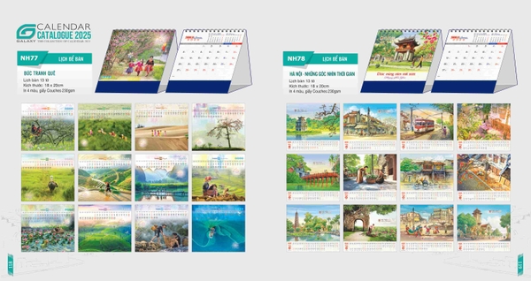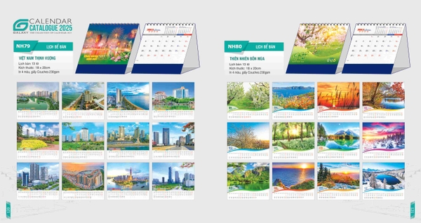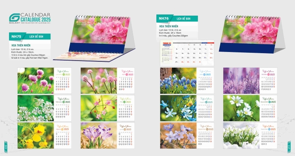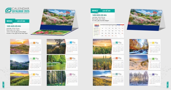 Lịch để bàn 13 tờ, 2 lò xo với kích thước 24x16 cm với nhiều chủ đề khác nhau.