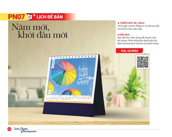 Lịch 13 tờ, giấy couche 250gsm, in mầu cao cấp