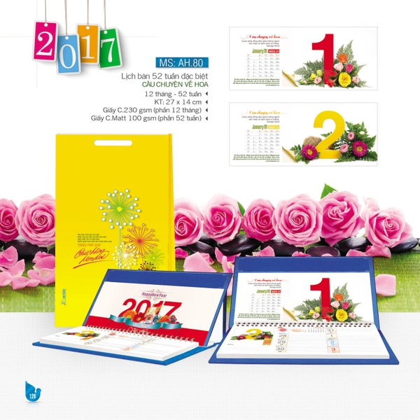 - Chất liệu : Giấy C.230 gsm ( 12 tháng), Giấy C.Matt 100 gsm (phần 52 tuần)