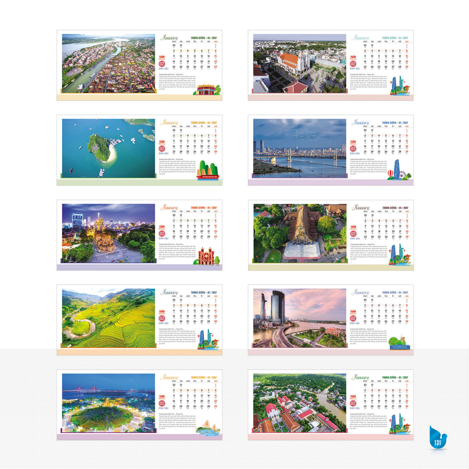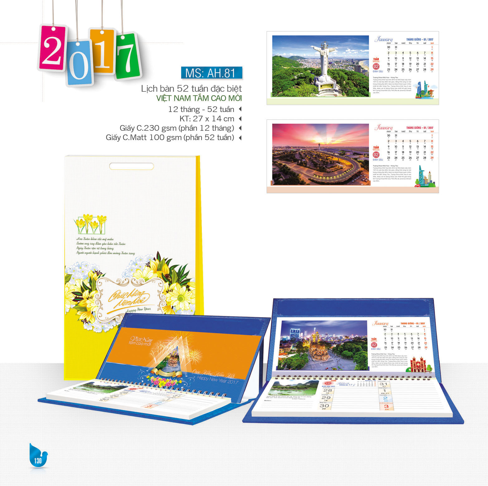 - Chất liệu : Giấy C.230 gsm ( 12 tháng), Giấy C.Matt 100 gsm (phần 52 tuần)