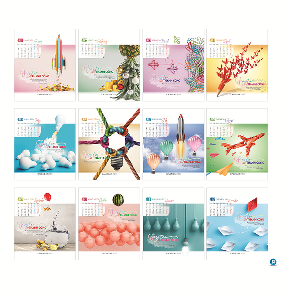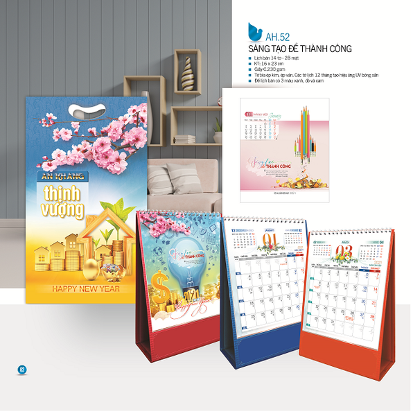 Tờ bìa ép kim, ép ván. Các tờ lịch 12 tháng tạo hiệu ứng UV bóng