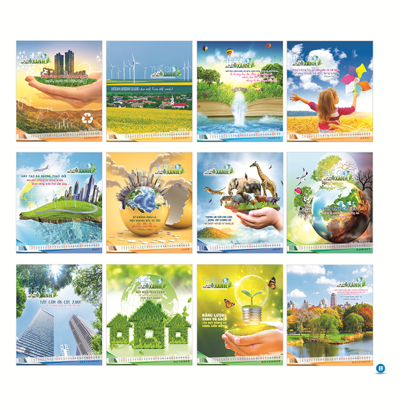 Tờ bìa ép kim, ép ván. Các tờ lịch 12 tháng tạo hiệu ứng UV bóng