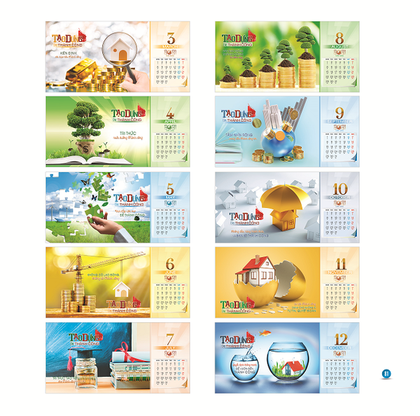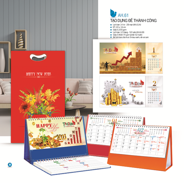 Tờ bìa ép kim, ép ván. Các tờ lịch 12 tháng tạo hiệu ứng UV bóng