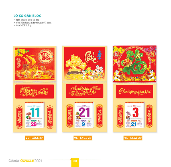 - Mã lịch: VL - LXGL27; VL - LXGL28; VL - LXGL29