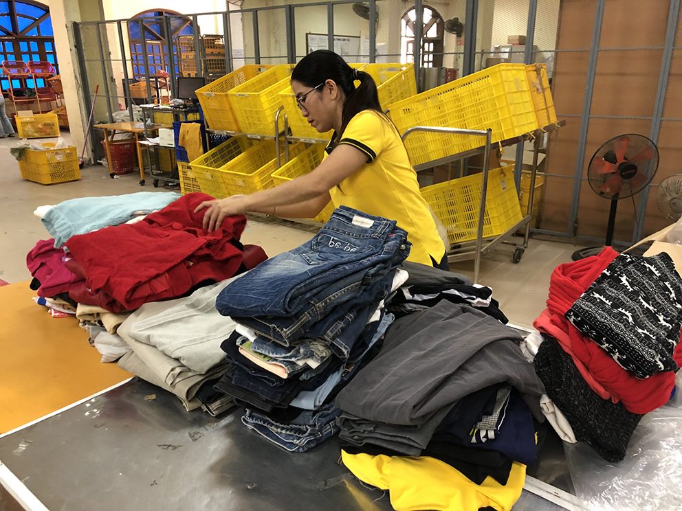 Nhân viên Bưu điện phân loại quần áo của các nhà hảo tâm gửi tặng đồng bào miền Trung