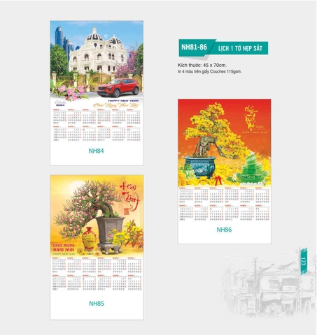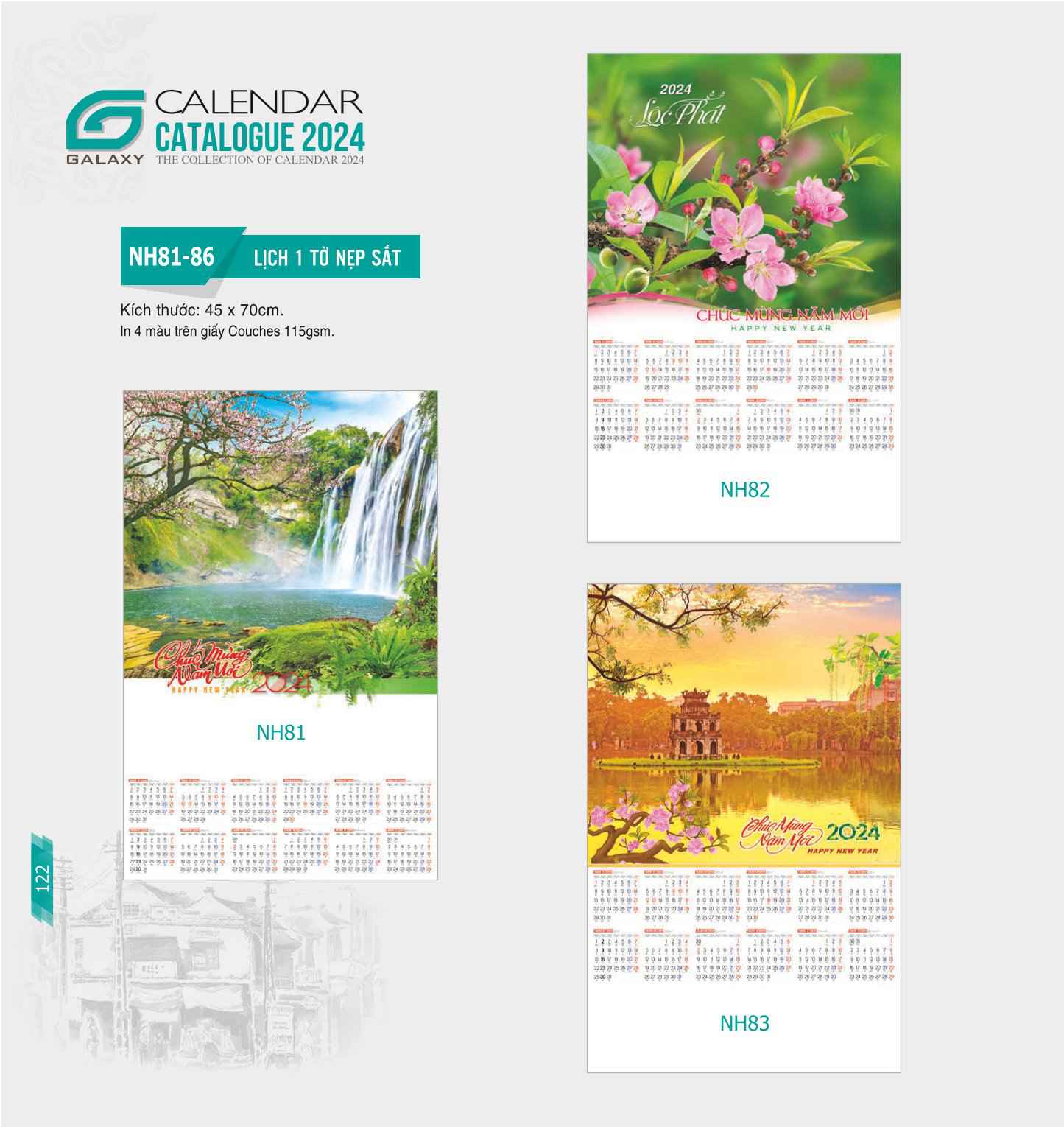 Lịch 1 tờ nẹp sắt với nhiều mẫu mã và chủ đề khác nhau.